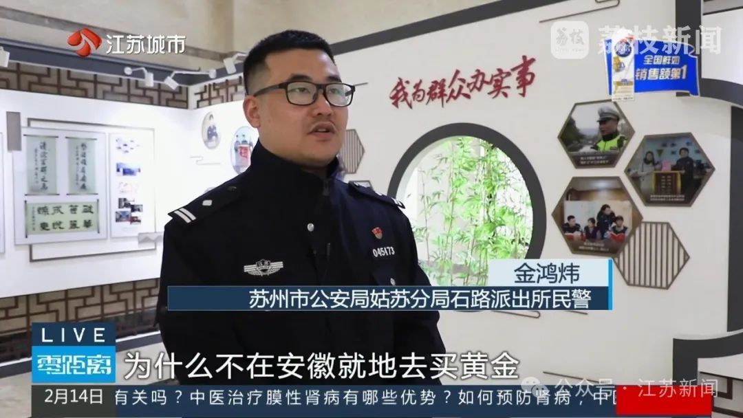 “因为我们之前也和附近金店做过相应的反诈宣传,有碰到大额买金的情况,很有可能是被诈骗分子洗脑,或者正在帮助诈骗分子洗钱。”苏州市公安局姑苏分局石路派出所民警金鸿炜说。